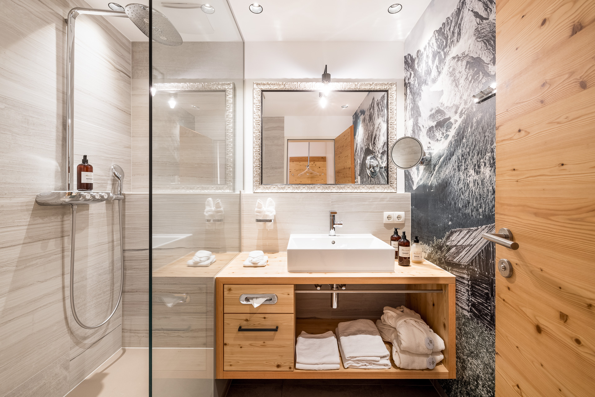 - Hairdryer, bathrobes, spa bag
